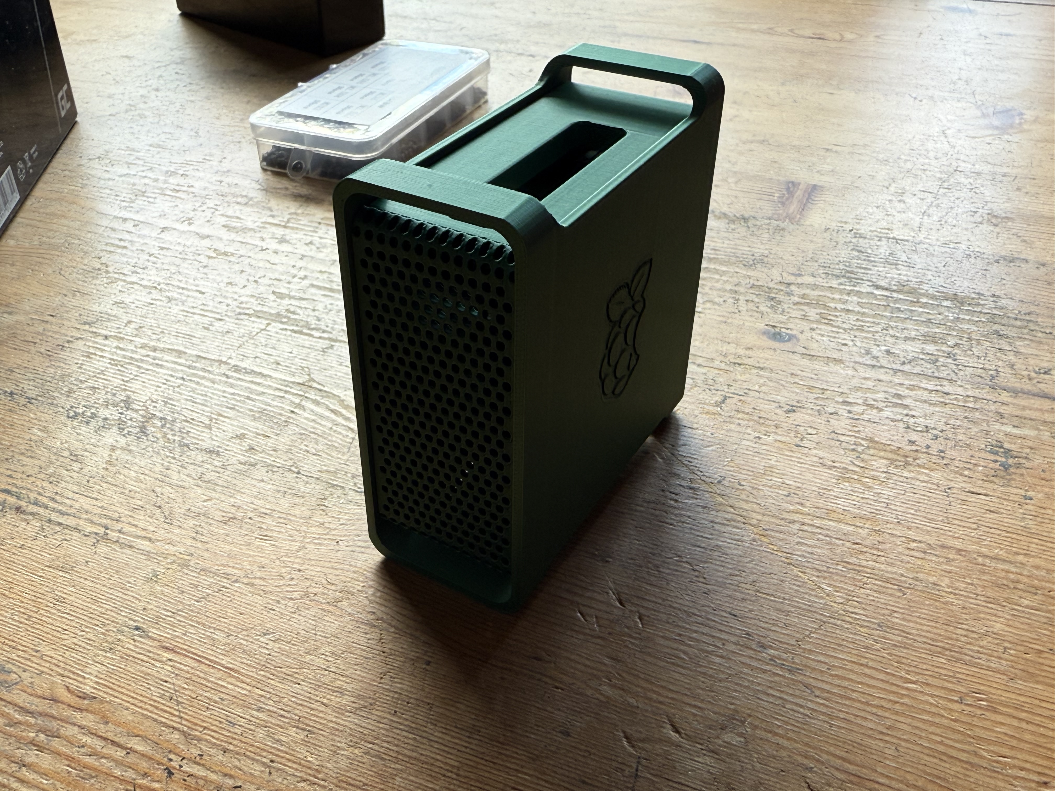 I 3D-Printed a case for it in the Style of the Powermac G5.